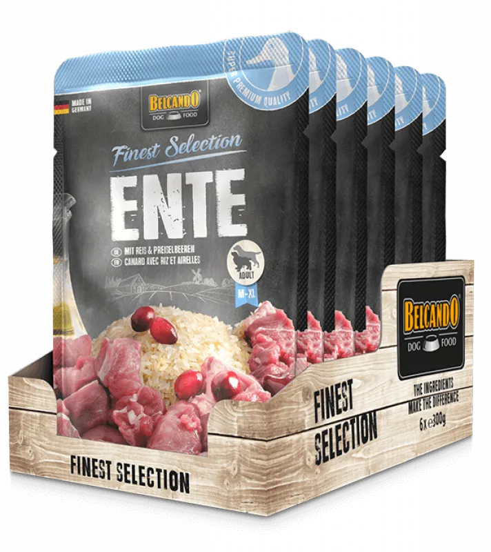 BELCANDO® Finest Selection bietet saftiges Fleisch, das mit raffinierten Zutaten verfeinert wird und schonend im Portionsbeutel gegart wird, um alle Nährstoffe zu bewahren. Das kalt gepresste Distelöl liefert essentielle ungesättigte Fettsäuren, die für eine ausgewogene Ernährung Ihres Hundes wichtig sind. Diese Hundenahrung ist außergewöhnlich schmackhaft und bekömmlich und eignet sich besonders gut für sensible Hunde oder wählerische Hunde.