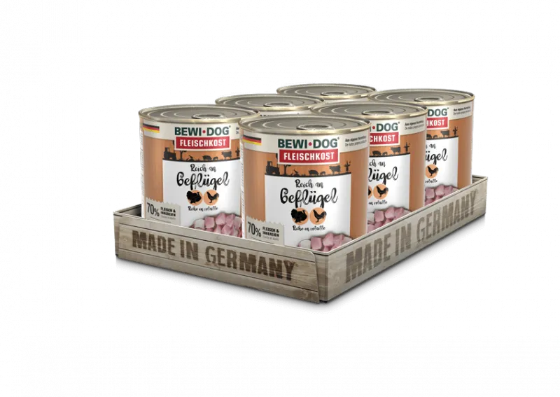 BEWI DOG® Fleischkost enthält saftiges Muskelfleisch mit einer festen Fleischstruktur, genau wie es Hunde lieben. Die zahlreichen Geschmacksvarianten sorgen für eine willkommene Abwechslung in der Hundenahrung.
