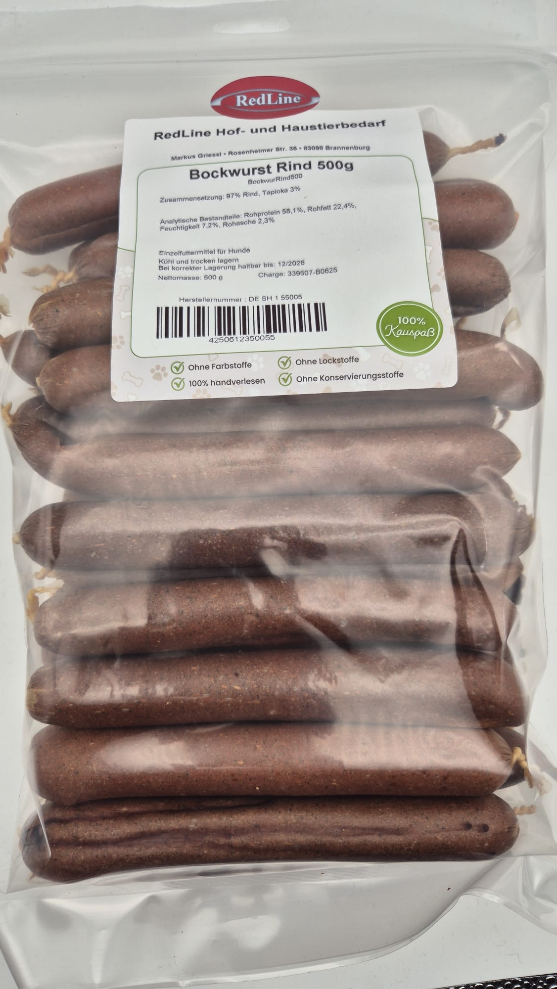 Unsere Bockwurst vom Rind für Hunde – natürlich, lecker und frei von Konservierungsstoffen!